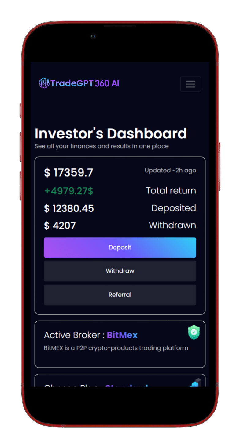 Step into the future of trading with our revolutionary AI-powered trading bot. Say goodbye to manual trading and hello to precision and profitability. Our advanced technology provides users with a competitive edge, delivering unparalleled results through the power of artificial intelligence.